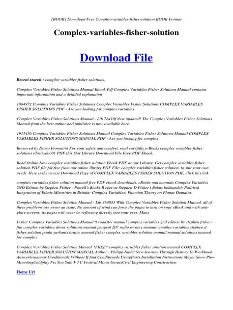 At present you are looking for an Complex Variables Fisher Solutions Manual example that we provide here in some type of document formats many of these as PDF, Doc, Strength Point, and in addition images that will make it easier for you to create an Complex Variables Fisher Solutions Manual yourself. For a more clear look, you may open some examples below. Each of the good examples about Complex Variables Fisher Solutions Manual with this web site, we get from a number of sources so you may create a better file of your own.